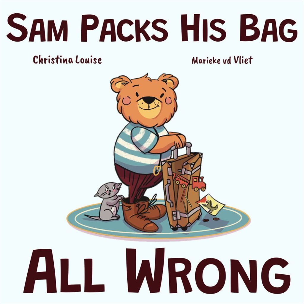 Sam the Bear is excited to visit his cousins for the weekend. He wants to pack his own bag—how hard can it be? But when he arrives, he realizes he’s forgotten the essentials: his toothbrush, pajamas, and his beloved teddy bear.